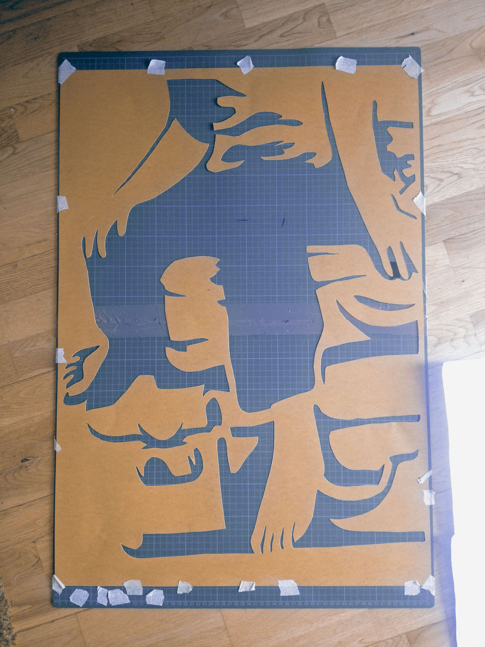 I've painted some kids with the luggages, and some sign indications, with Poscas, spray paint and Stencil.
